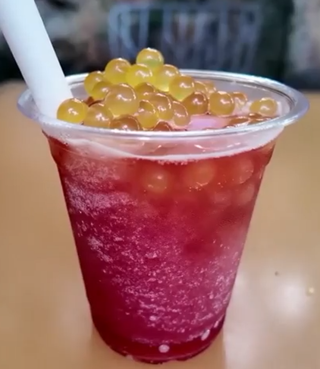 • Toppings: Passion fruit boba pearls and a souvenir glow cube.