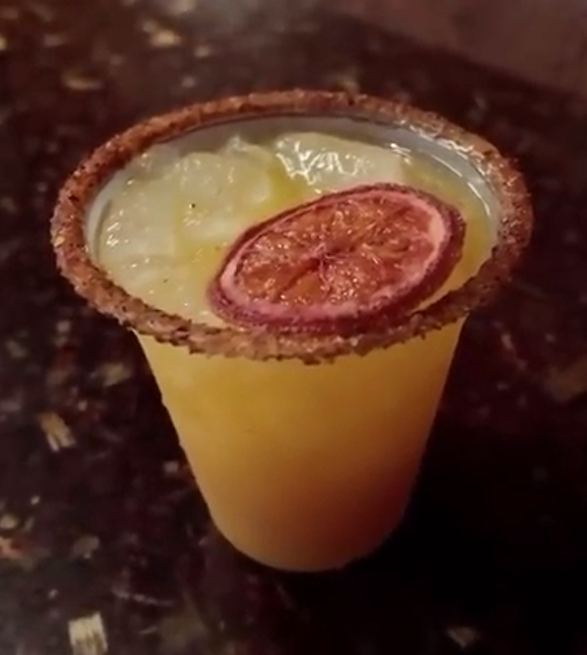 • The Edge: It features a chili-lime rim and a dehydrated blood orange wheel.