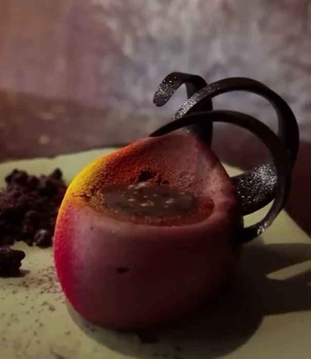 • Profile: Cinnamon milk chocolate mousse, caramelized banana cake, and chocolate sesame crumble.