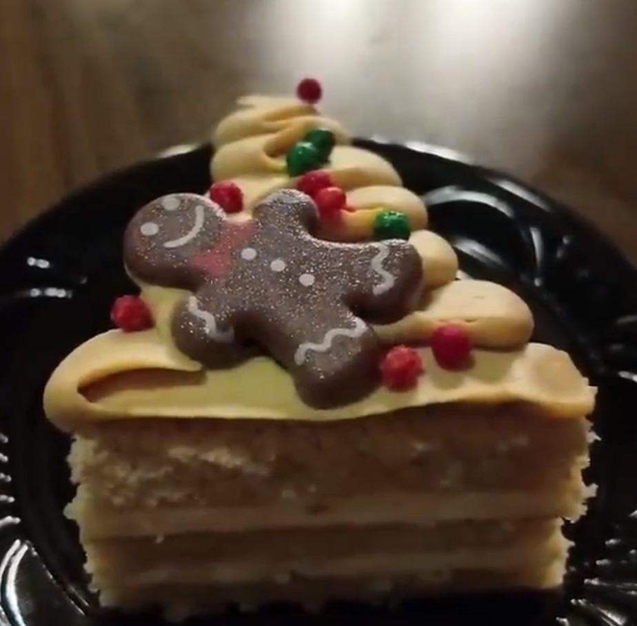 Over at Columbia Harbor House, you can find a tree-shaped Gingerbread Chiffon Cake for $6.29. It features cream cheese frosting, dulce de leche panna cotta, and chocolate pearls.