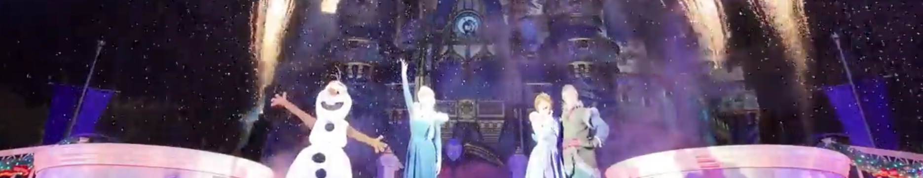 This show takes place right in front of Cinderella Castle. Anna, Elsa, Olaf, and Kristoff gather to decorate the castle for the season. The snowgie siblings and Olaf help add garlands, ornaments, and wreaths to Cinderella Castle, transforming it into a shimmering crystallized palace. Elsa uses her powers to transform the castle with stunning projections. Real Disney “snow” (soap bubbles) falls over the crowds. The show concludes with a beautiful burst of fireworks above the spires. Best of all, Frozen Holiday Surprise is available during regular park hours, so you don’t need a special event ticket to enjoy it.