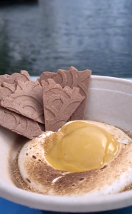 This is one of the new dishes for 2026 and is available at The Deconstructed Dish in World Discovery. Featuring key lime curd, key lime jelly, toasted meringue, and graham cracker crumbs with waffle cone triangles. The waffle cone triangles add a crisp texture and visual appeal, making each bite a fun mix of tart, sweet, and crunchy.